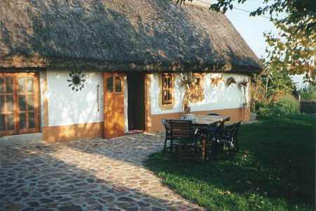gebaut und mit Reet gedeckt. Dies führt zu einem angenehmen, natürlichem Raumklima in den Häusern. Das heißt, im heißen Sommer ist es angenehm kühl im Haus und an kühleren Tagen kann schon mit wenig Feuer im Ofen eine angenehme Temperatur erreicht werden.